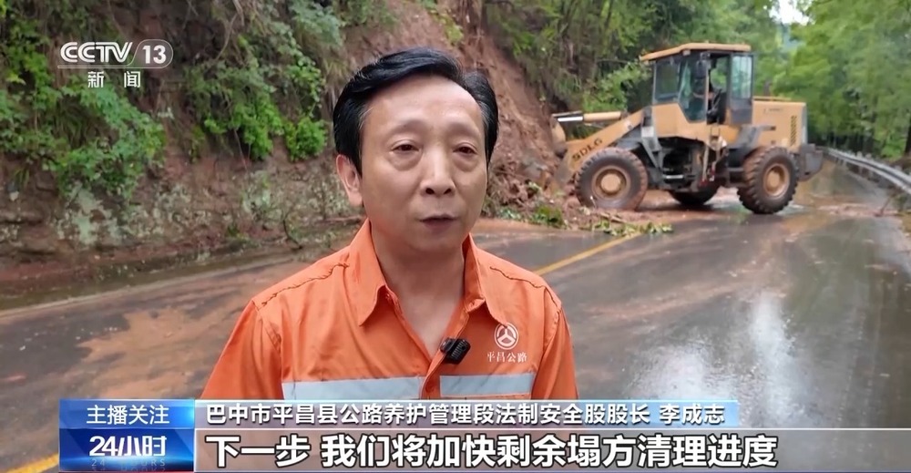 巴中市平昌县公路养护管理段法制安全股股长 李成志:下一步,我们将加快剩余塌方清理进度,密切留意天气变化,加大道路巡查频次,随时应对可能的新险情,全力保障全县道路安全畅通。